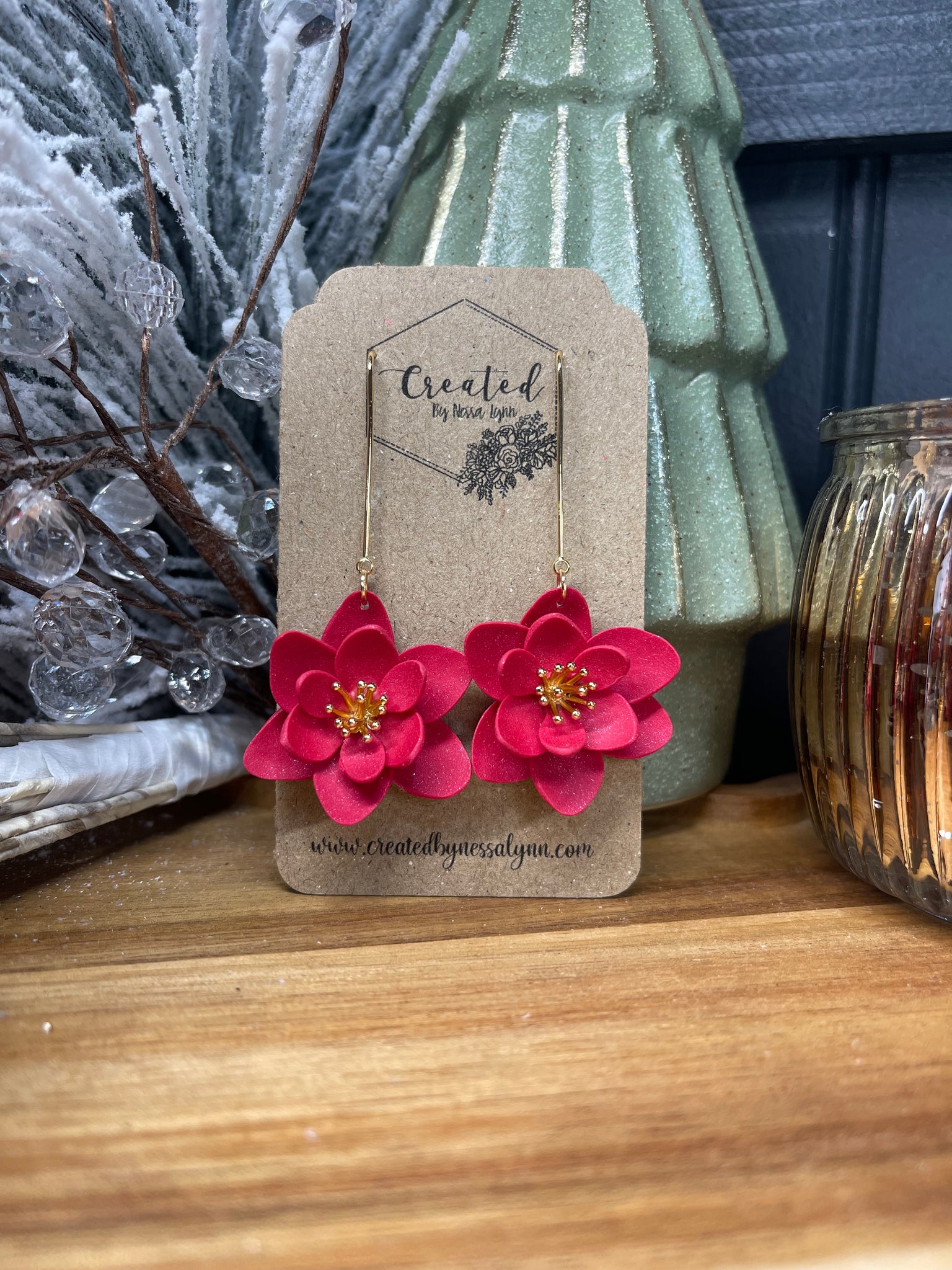 Red flower on a long gold hook